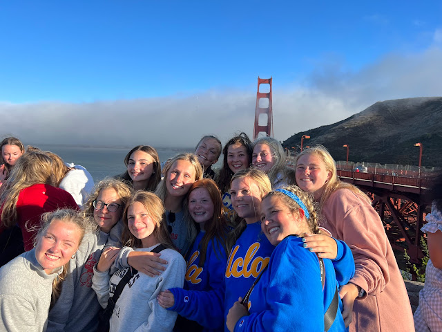 We woke up at 7 am this morning to head to San Francisco cliffs. We had pop tarts and apple juice for breakfast on the way to the cliff. We saw a nice view after making our way through the cave. Before walking up to the bus, we had a race to see who was the fastest on the trip. They raced up a steep hill and though it was close between Ryan J. and Hunter, Ryan pulled through! But, the participants did not feel too hot after this race. On the way to the city, some of the guys got sick… sounds like they weren’t in shape. On our way to Fisherman’s Wharf, we passed The Painted Ladies seen in Full House! We made it to the pier where we had a view of the famous Alcatraz prison.  Upon arrival, we listened to some research. The research consisted of Alex with San Francisco, Maddie M with Chinatown, Audrey with Fisherman’s Wharf, Erik with Lombard Street, and Addison M. with Pacific Ocean. We then took pictures with our groups and left the pier to explore the city of San Francisco! Most people started in various gift shops along the pier and others headed down to Ghiradelli Square to buy chocolate. Coit Tower, Lombard Street, Little Italy, Chinatown, and Union Square were among the attractions that some of us visited.  For lunch, most people ate clam chowder or at In n Out for the first time! Many people bought souvenirs and cheap clothing items from Chinatown as well. After a long day of shopping and sightseeing, everyone met up in front of the restaurant to eat dinner. We had fun sitting together and talking while we enjoyed delicious Chinese food. After dinner, we were all given fortune cookies, which we ate on the way back to the bus. Many people stopped to get ice cream and gelato. We then rode to the Golden Gate Bridge and walked all the way to the end of it. As we crossed the bridge, we held hands with our friends and walked 23 steps together. Now, we are all best friends for life! ☺