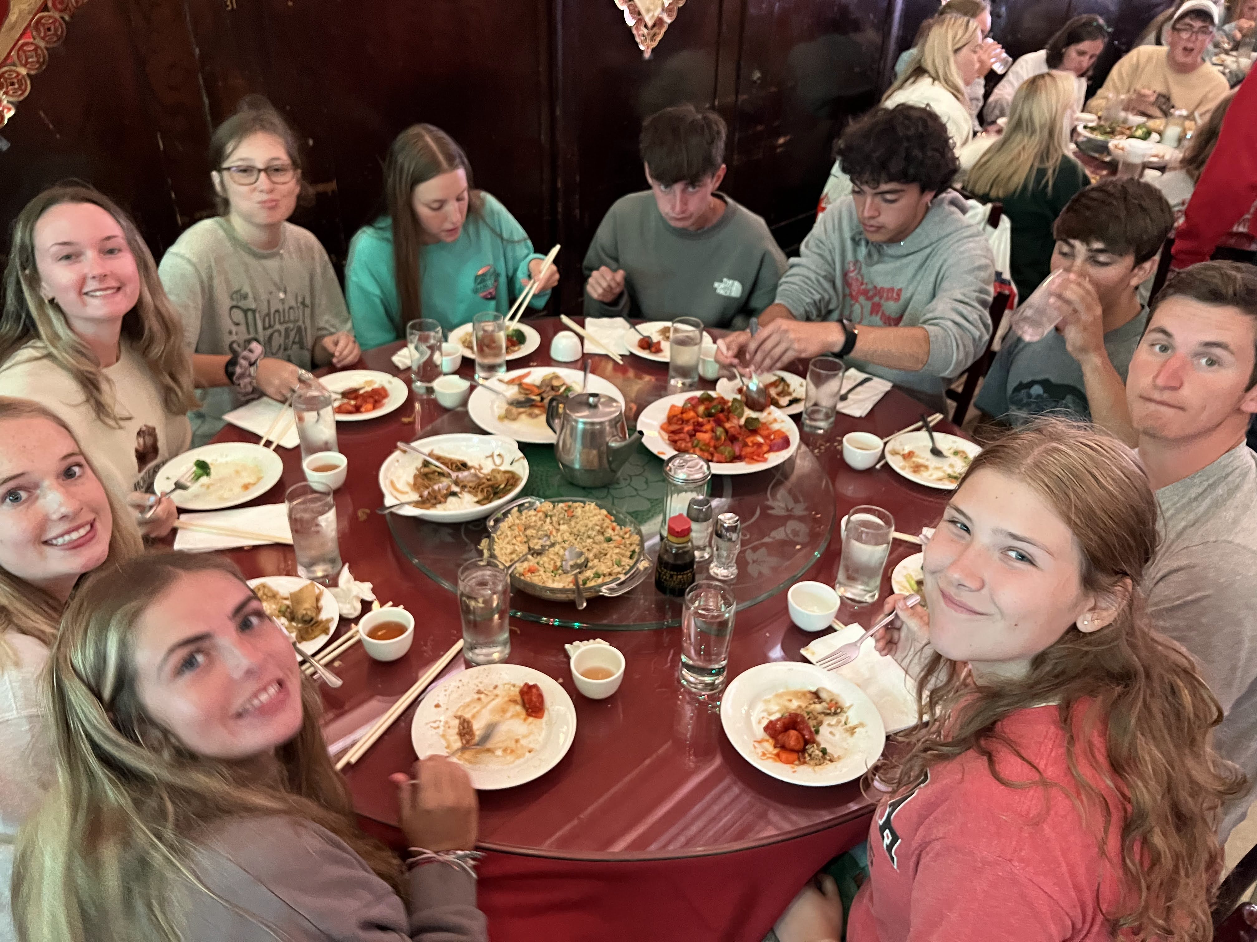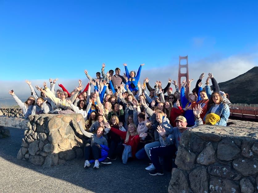 We woke up at 7 am this morning to head to San Francisco cliffs. We had pop tarts and apple juice for breakfast on the way to the cliff. We saw a nice view after making our way through the cave. Before walking up to the bus, we had a race to see who was the fastest on the trip. They raced up a steep hill and though it was close between Ryan J. and Hunter, Ryan pulled through! But, the participants did not feel too hot after this race. On the way to the city, some of the guys got sick… sounds like they weren’t in shape. On our way to Fisherman’s Wharf, we passed The Painted Ladies seen in Full House! We made it to the pier where we had a view of the famous Alcatraz prison. Upon arrival, we listened to some research. The research consisted of Alex with San Francisco, Maddie M with Chinatown, Audrey with Fisherman’s Wharf, Erik with Lombard Street, and Addison M. with Pacific Ocean. We then took pictures with our groups and left the pier to explore the city of San Francisco! Most people started in various gift shops along the pier and others headed down to Ghiradelli Square to buy chocolate. Coit Tower, Lombard Street, Little Italy, Chinatown, and Union Square were among the attractions that some of us visited. For lunch, most people ate clam chowder or at In n Out for the first time! Many people bought souvenirs and cheap clothing items from Chinatown as well. After a long day of shopping and sightseeing, everyone met up in front of the restaurant to eat dinner. We had fun sitting together and talking while we enjoyed delicious Chinese food. After dinner, we were all given fortune cookies, which we ate on the way back to the bus. Many people stopped to get ice cream and gelato. We then rode to the Golden Gate Bridge and walked all the way to the end of it. As we crossed the bridge, we held hands with our friends and walked 23 steps together. Now, we are all best friends for life! ☺